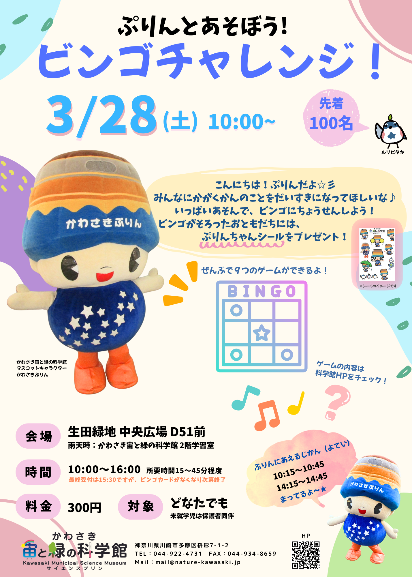 3月28日(土)ぷりんと遊ぼう!ビンゴチャレンジ!